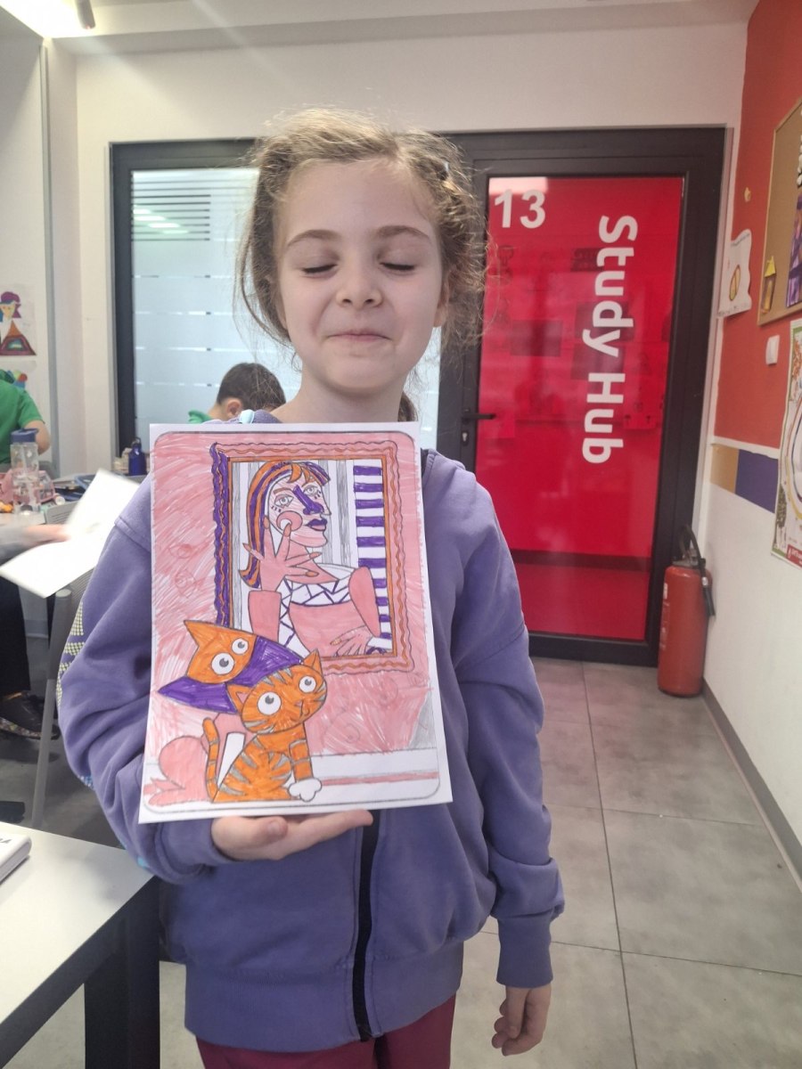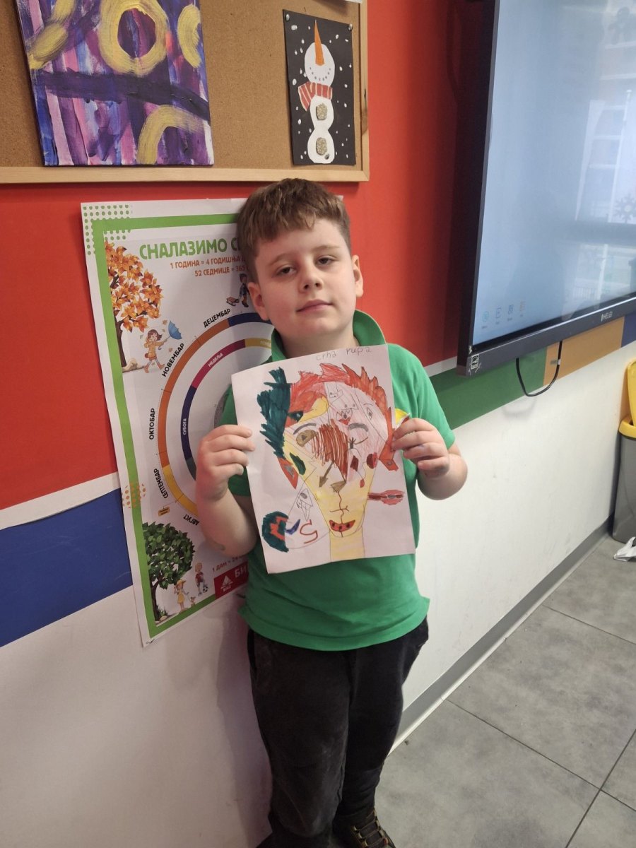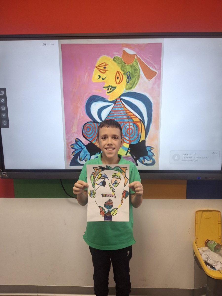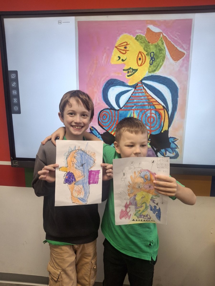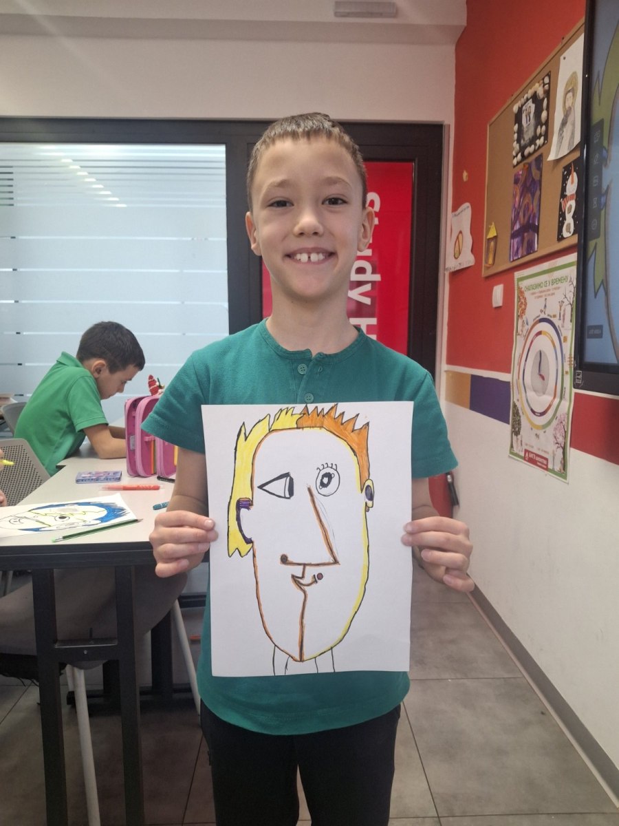 In the art class at Savremena Primary School, students stepped into the world of one of the 20th century’s most influential artists – Pablo Picasso. Through analysis of his distinctive cubist style, Savremenci explored how a face can be portrayed from multiple angles simultaneously, how geometric forms build emotion, and why art doesn’t have to be realistic to be powerful. The goal wasn’t to copy Picasso, but to understand him – and then for each student to find their own way to transform that inspiration into a drawing bearing a personal stamp.