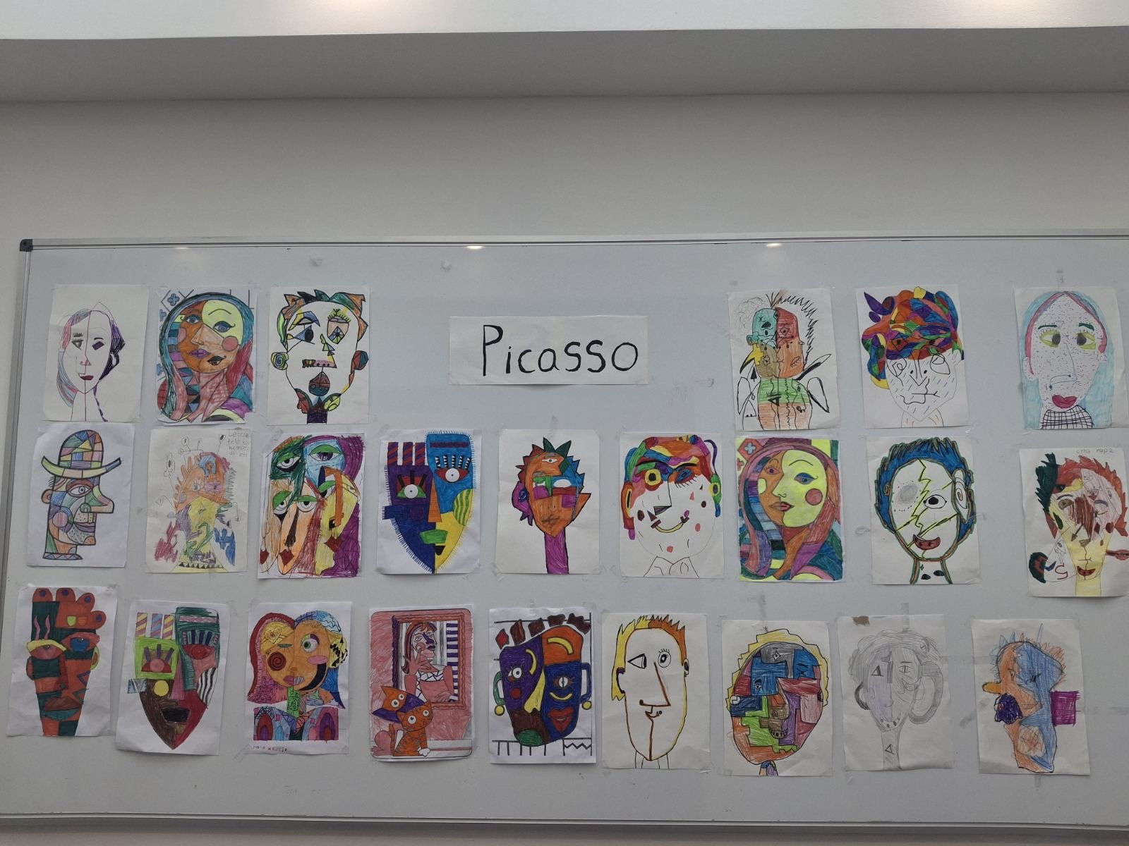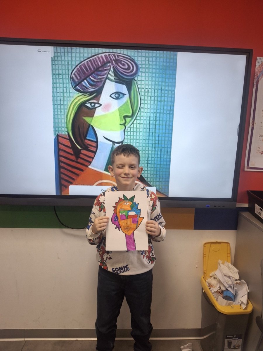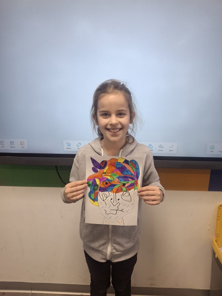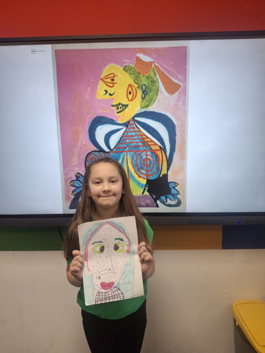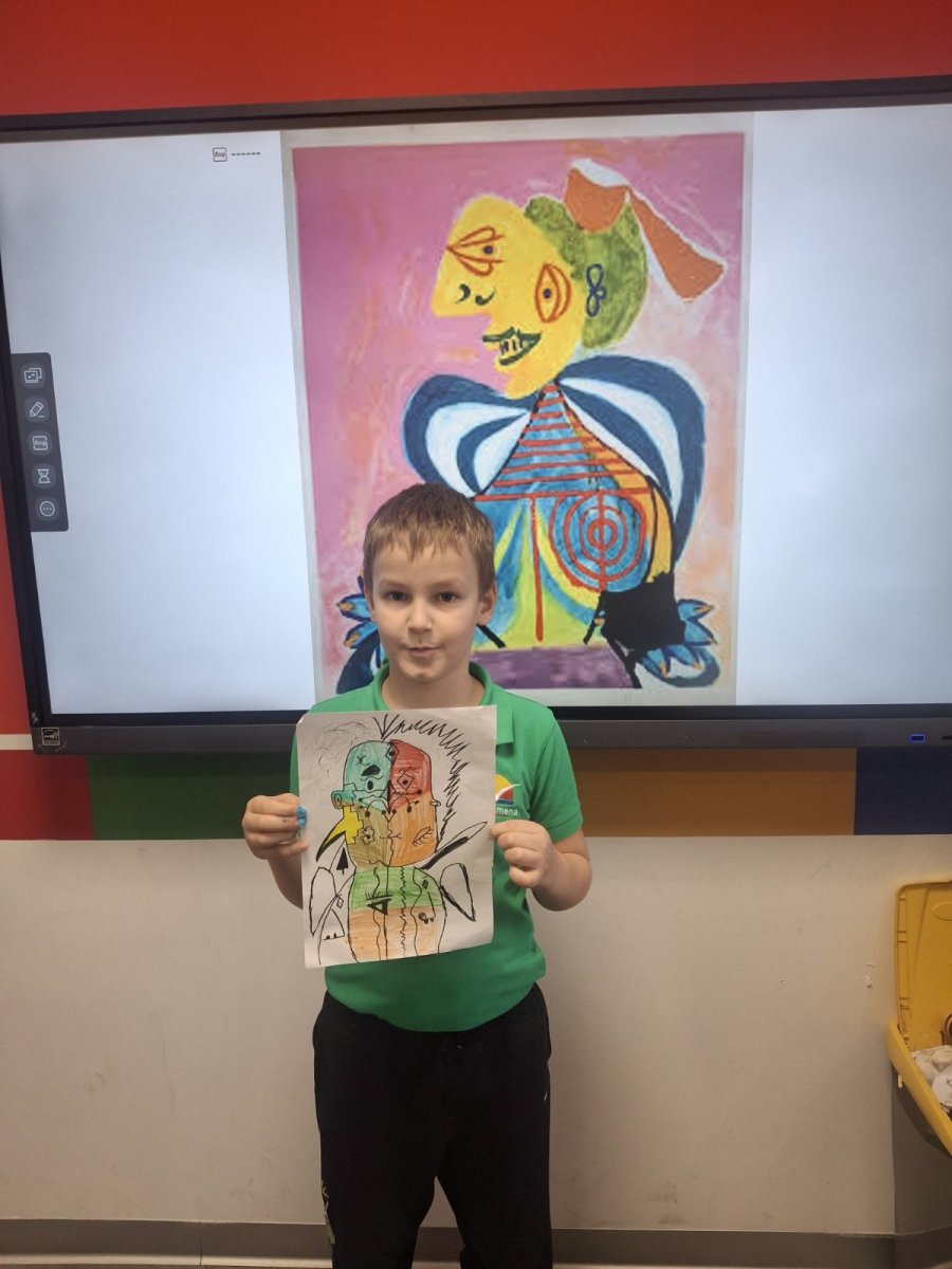 Before reaching for colors and markers, conversation was key. What makes cubism recognizable? How does Picasso break down a face into fragments, then reassemble it in a new, unexpected way? How do color, line, and form together create character? Students observed reproductions of works, asked questions, exchanged impressions. And they understood something important – that art begins with the freedom to see the world differently.