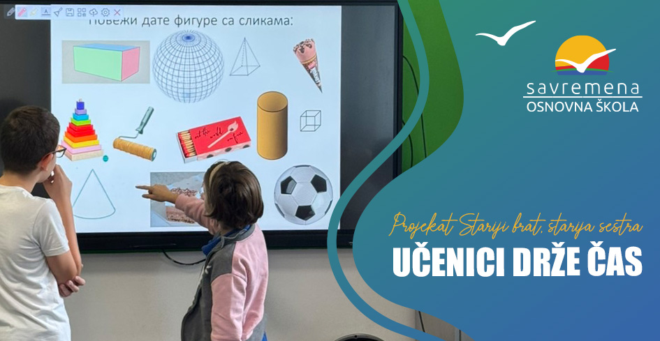 As part of the “Big Brother, Big Sister” school project, an extraordinary math class was held at Savremena Primary School — fifth graders took on the role of teachers and taught their younger peers, first graders. This activity combined play, learning, and mutual support, creating a unique atmosphere where students learned together, collaborated, and built trust.
