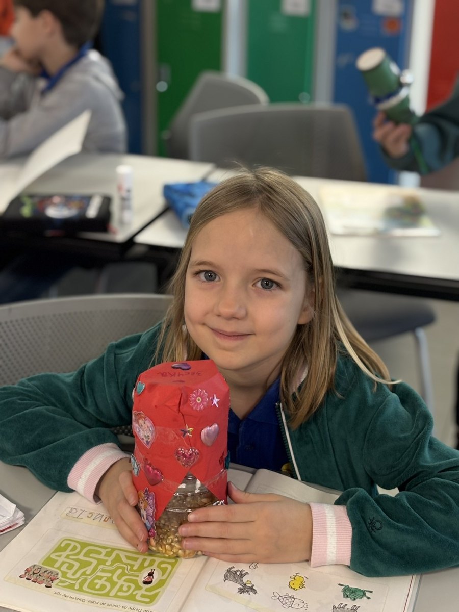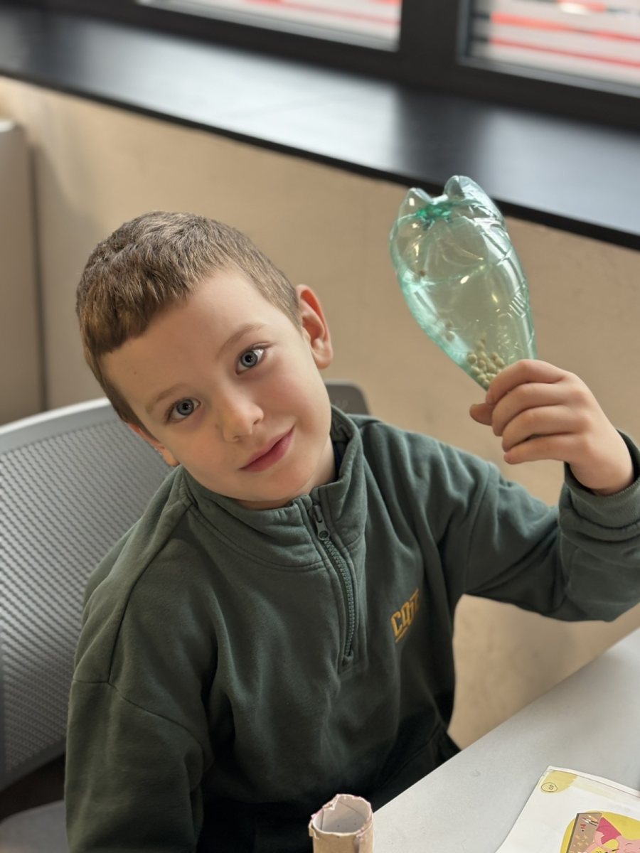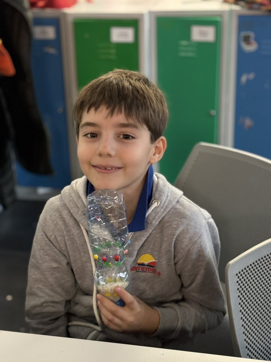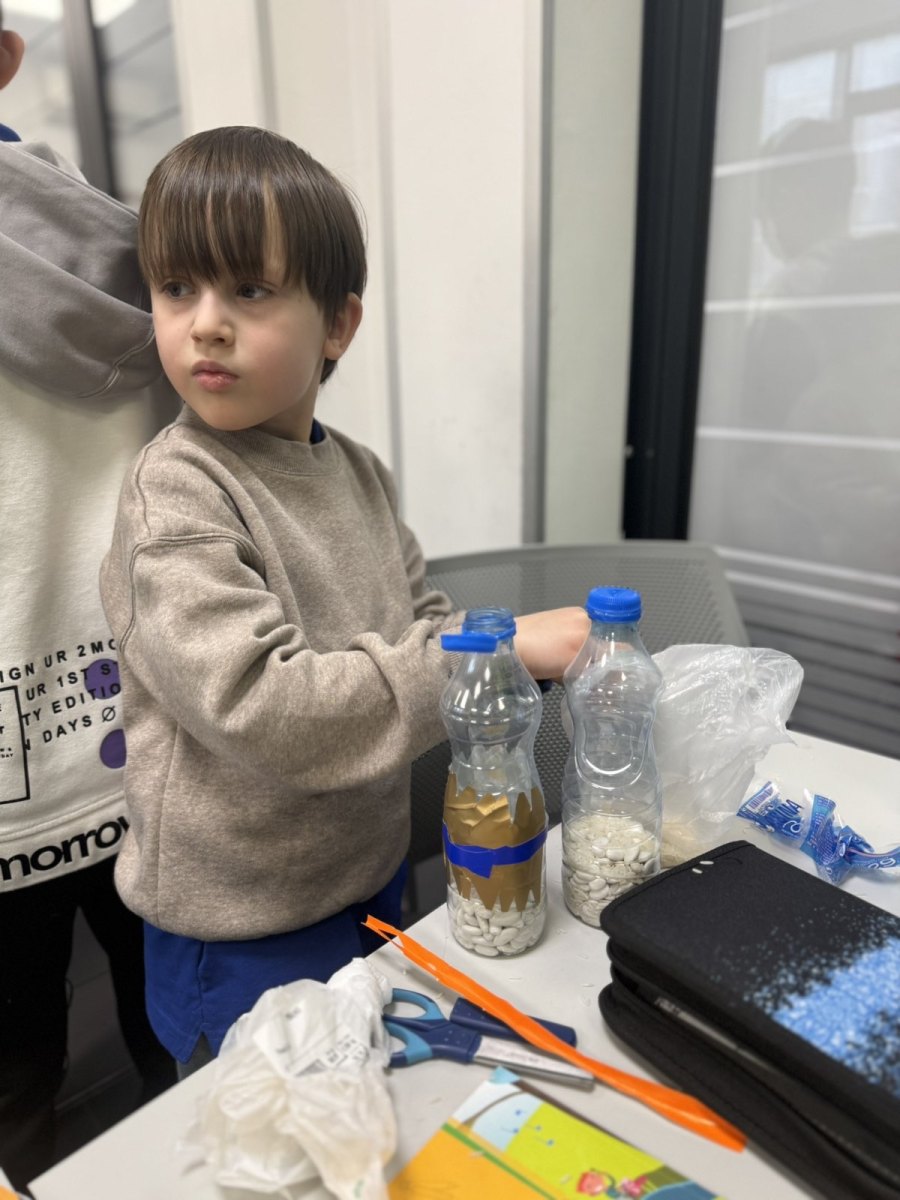 The classroom was filled with excitement as the children chose what to put inside their bottles—beans, rice, pieces of carrot, or a mix of everything. Each material produced a different sound, something the students quickly noticed. Some wanted a deep, muted sound and chose larger grains, while others preferred a sharp, bright sound created by fine rice. Every shaker was unique, just like the child who made it. The students understood that music is not only what we hear on the radio—music is all around us, we just need to know how to recognise it and create it.