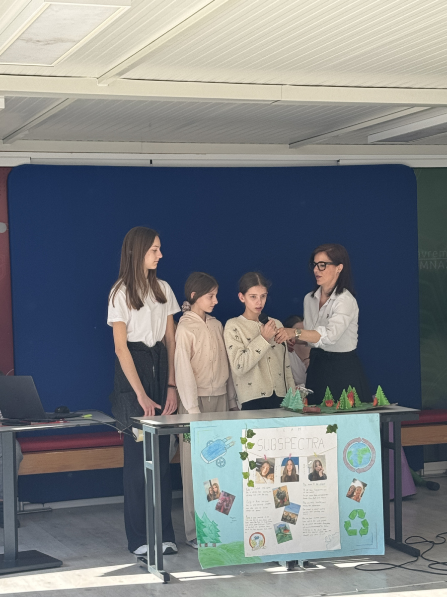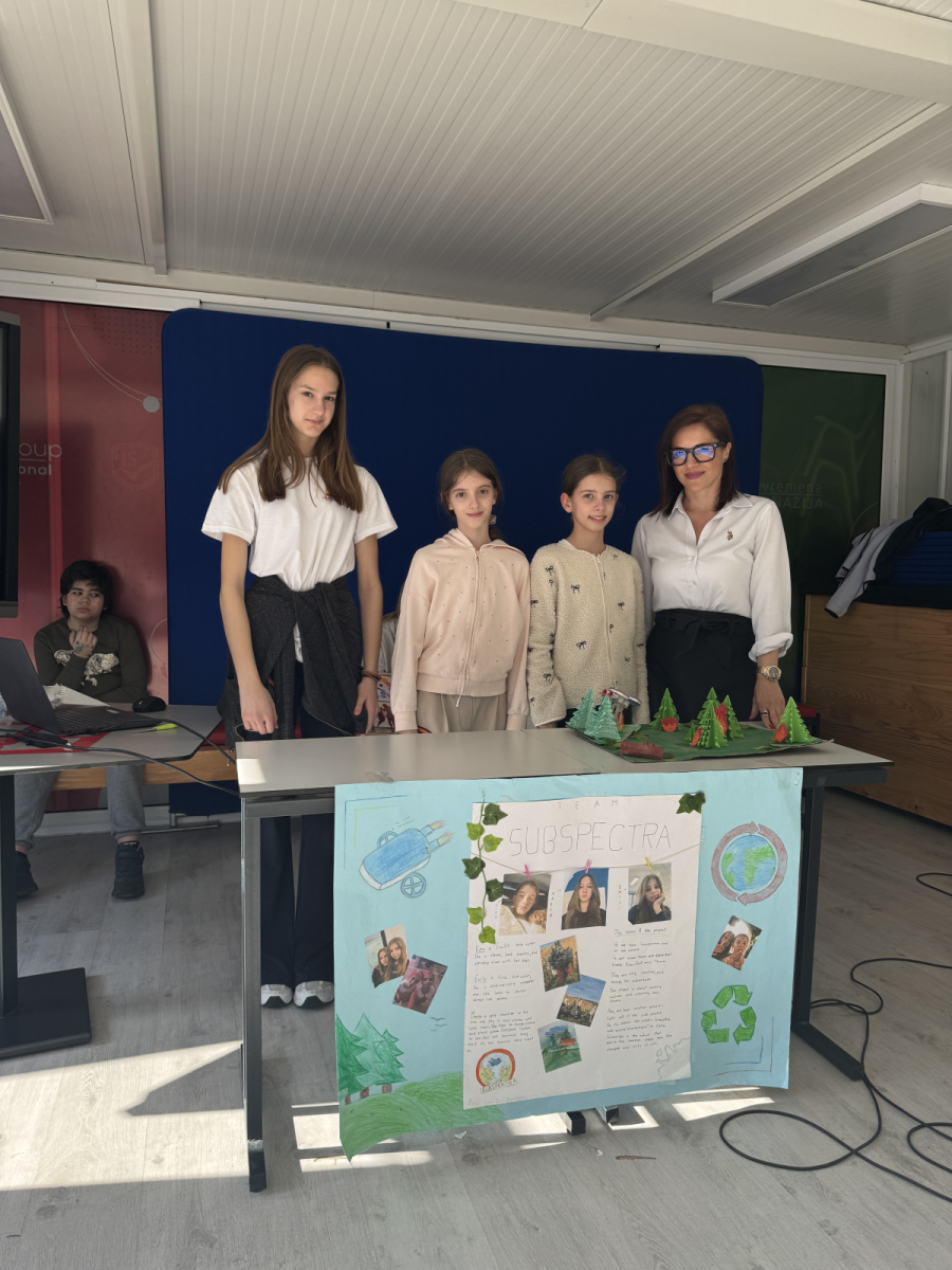 Team SubSpectra (Marija Simić, Emily Franciskovic, Kira Franciskovic) designed a robot that detects forest fires and extinguishes them before they spread. They made a robot model with four water tanks, simulated a fire, and showed how technology can save nature. In addition, they participated in tree planting – because saving what already exists is not enough, you also need to plant new.