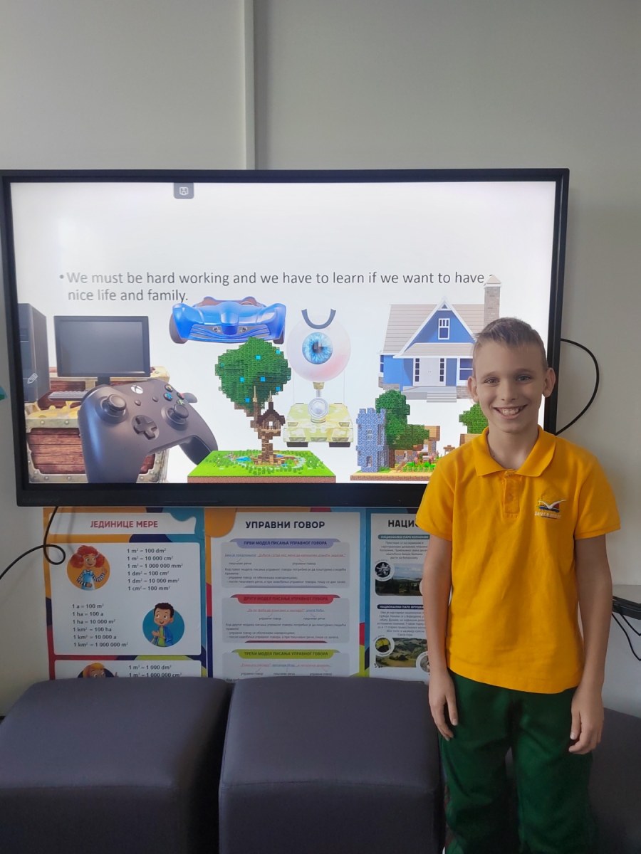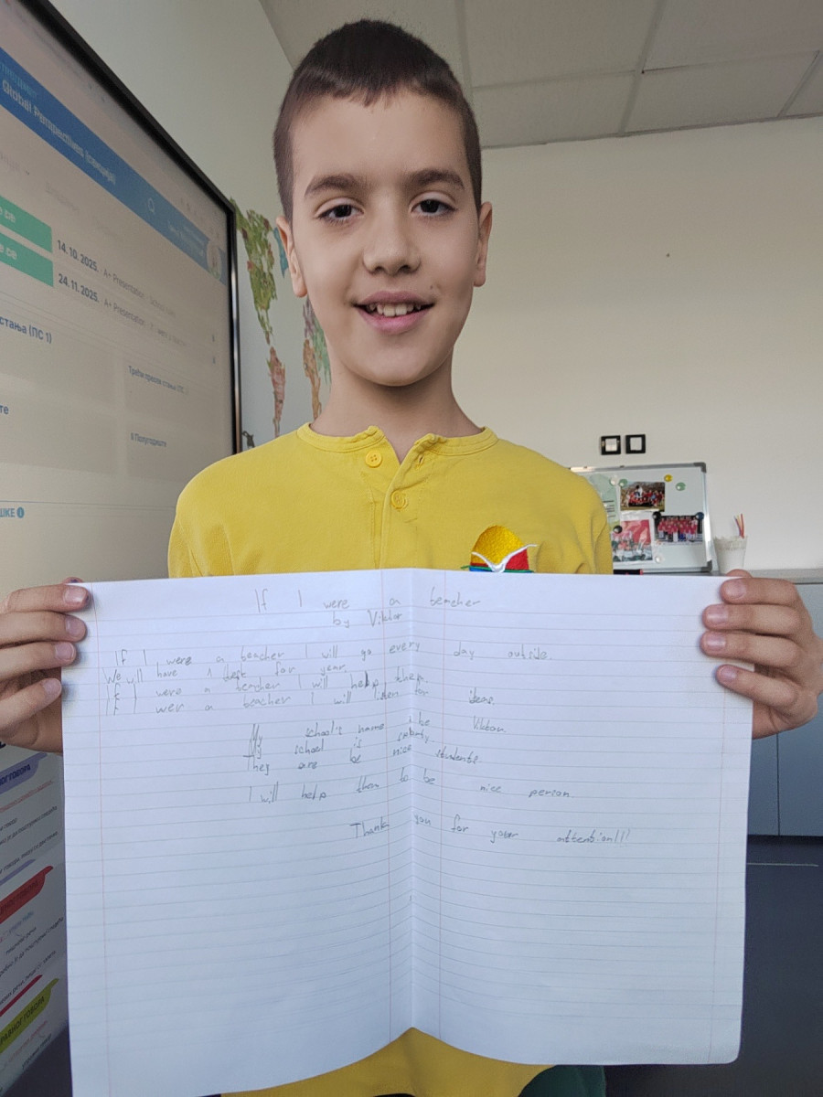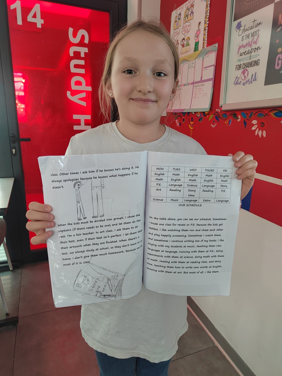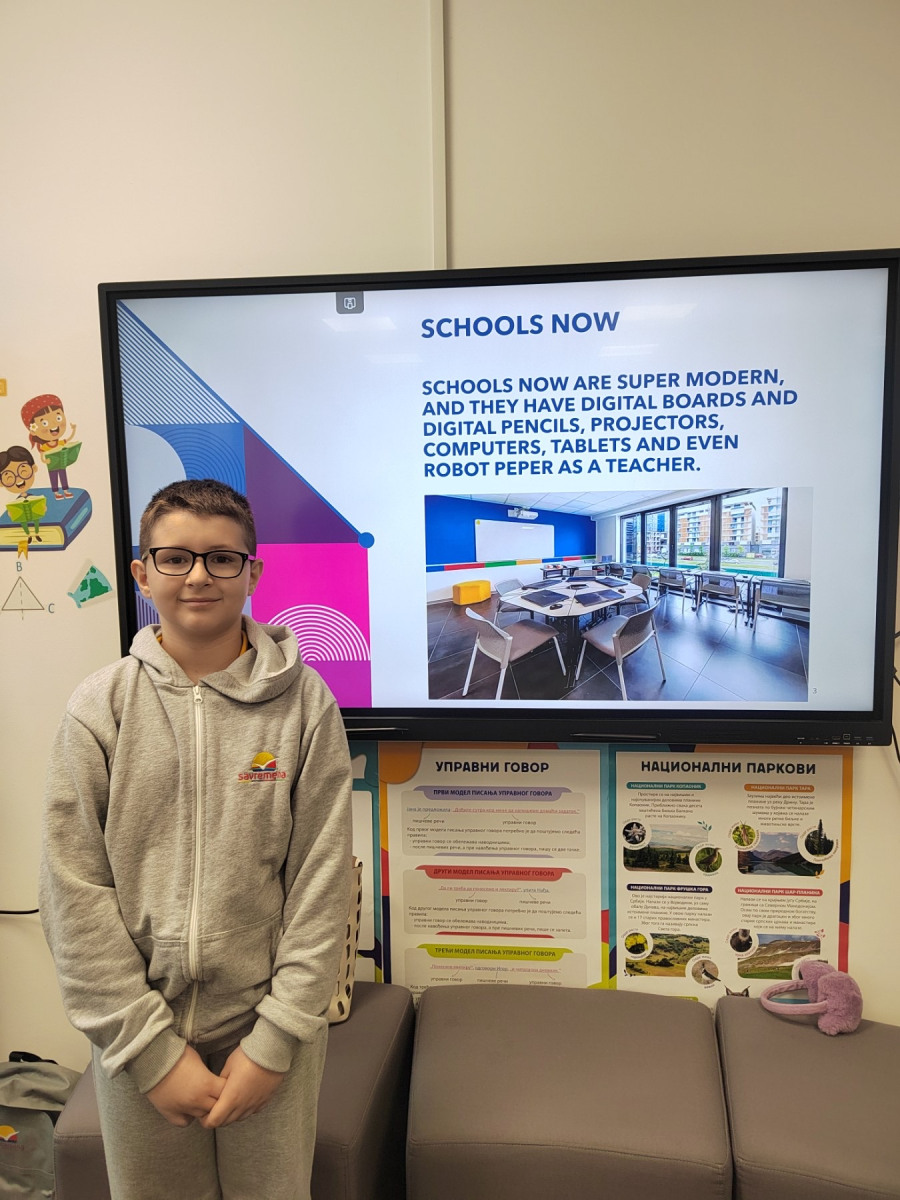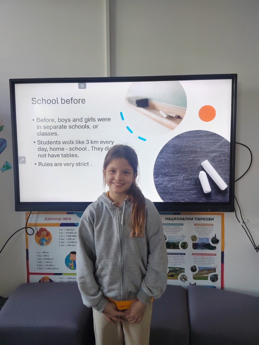 The second part of the project focused on research — what were schools like in the past, and what are they like today? Students compared the two through drawings, short texts and presentations. They noticed how today’s schools are more inclusive, creative and modern, and how technology transforms the way we learn. Some spoke fondly about old classrooms with chalk and wooden desks, while others expressed how grateful they are to learn through experiments, tablets and games.