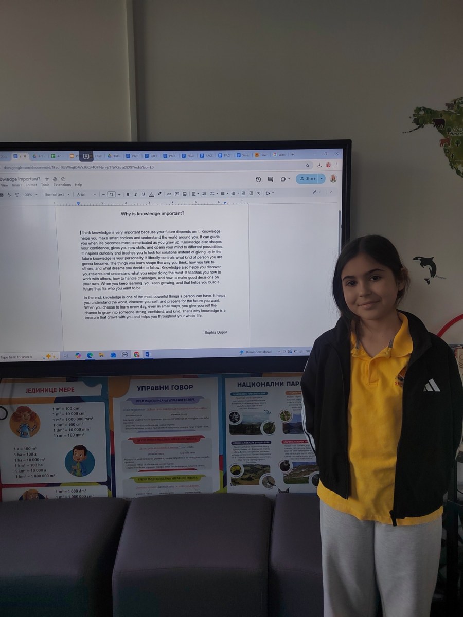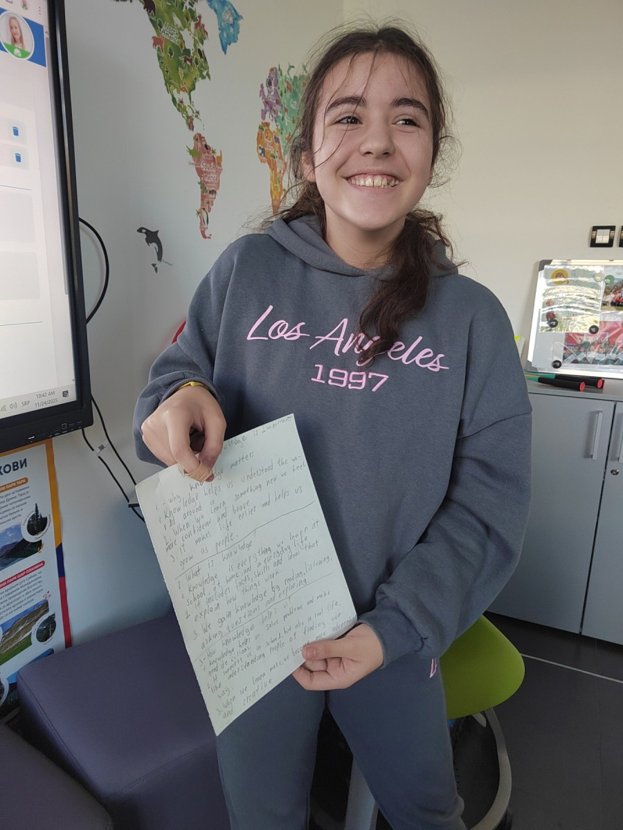 Through the topic “Why is knowledge important?”, students reflected on why we learn and how knowledge shapes our lives. Their answers were touching and wise: knowledge helps us understand the world, become better people, solve problems, grow and help others. The discussion was lively and inspiring — students built on each other’s ideas, gave examples from everyday life and explained how knowledge makes them feel braver and more confident.