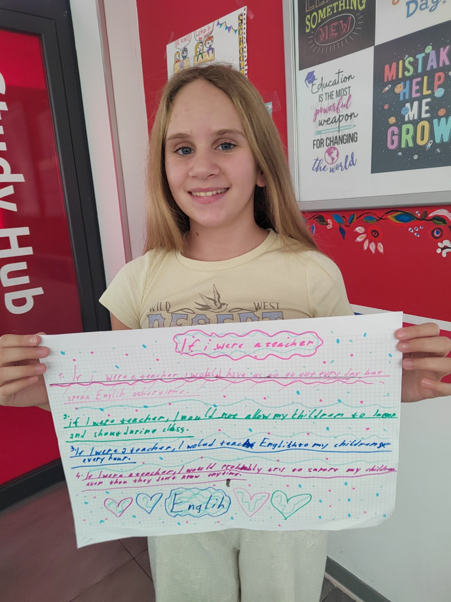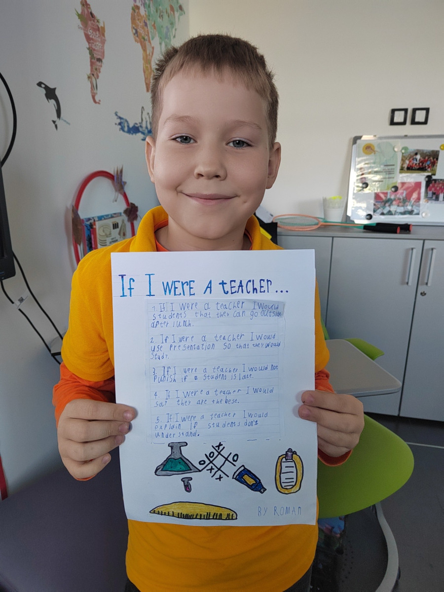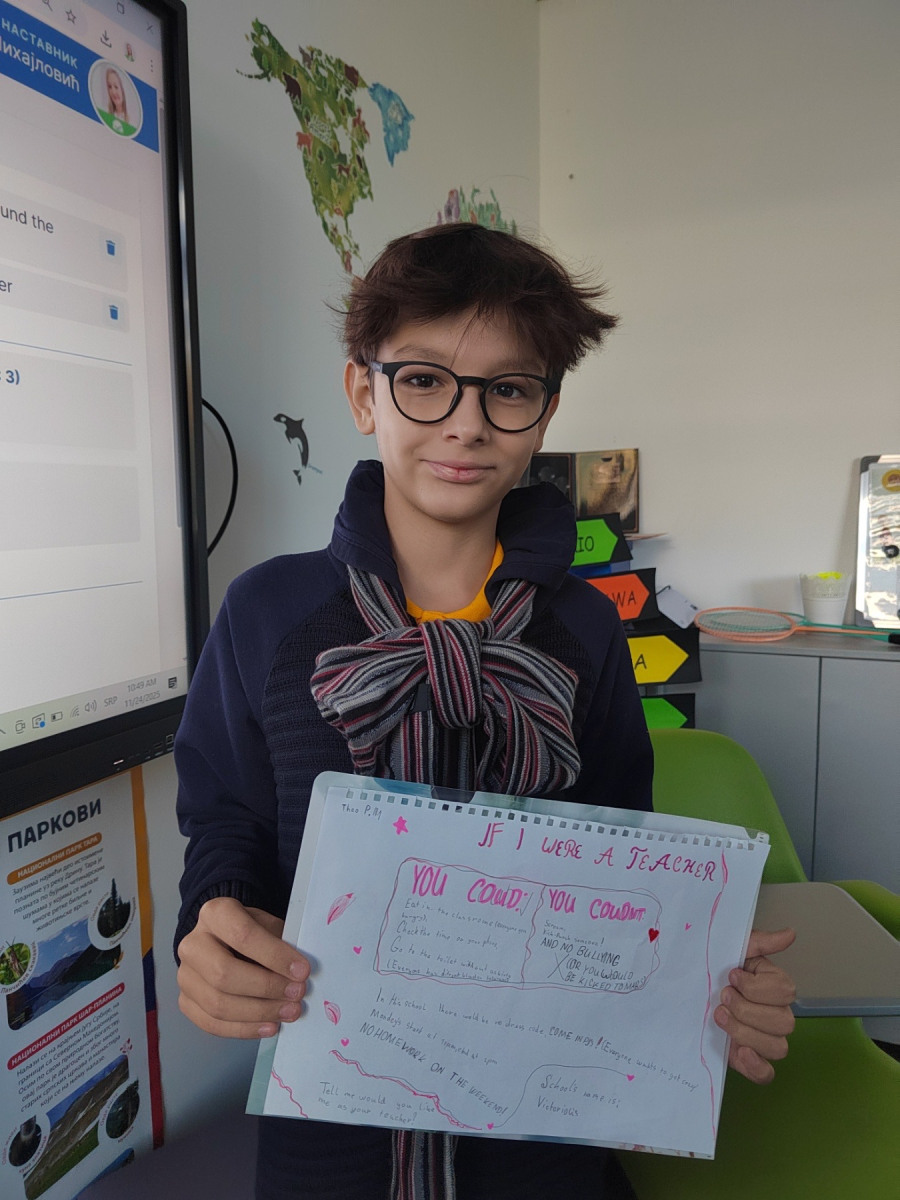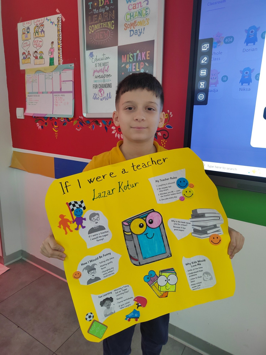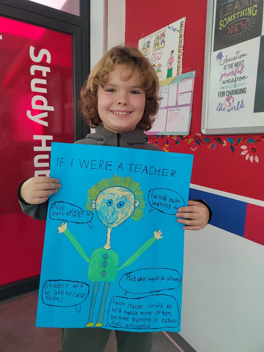 These works clearly show what children value — more freedom, support, understanding and fun, engaging ways of learning. Students proudly presented their posters to the class: some filled with colourful illustrations, others with carefully written texts, and some combining drawings with real “teacher rules”. Each work became a small window into a child’s thinking — honest, warm and completely authentic.