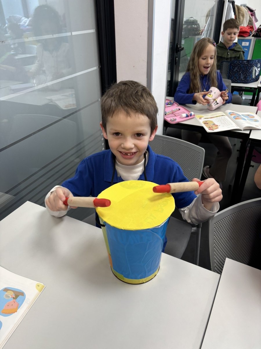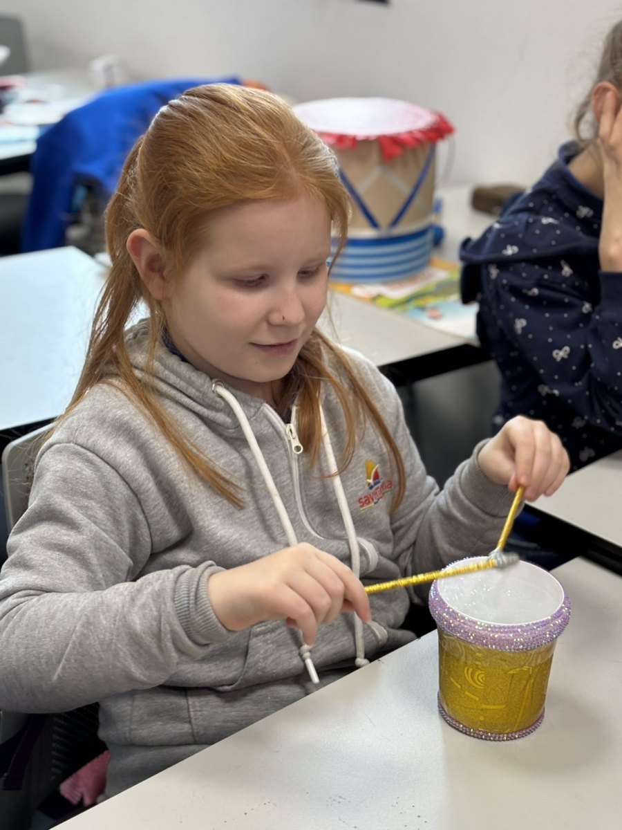Before the children and parents was a task that sounded simple but hid a real creative adventure – make a drum that will sound good and look impressive. They used cans, plastic containers, foil stretched over the opening to produce a real drum sound, and various decorations – glitter, ribbons, stickers, patterns. Each drum was unique, a reflection of the child’s imagination and the stylistic decisions of the parents who helped. There were yellow drums with stars, pink ones with Hello Kitty motifs, green ones with foil, blue ones with stripes. Each instrument carried a story about the collaborative work and fun that happened while making it.