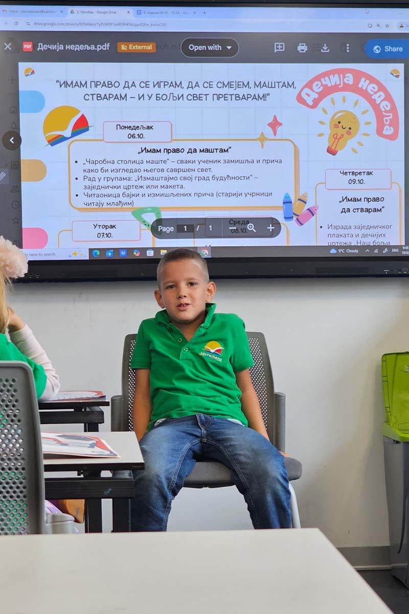 Their stories reflect a world where kindness, play, freedom, and respect prevail. At Savremena Primary School, activities like this nurture creativity and encourage students to believe in their ideas — because big and beautiful changes often begin with children’s dreams.