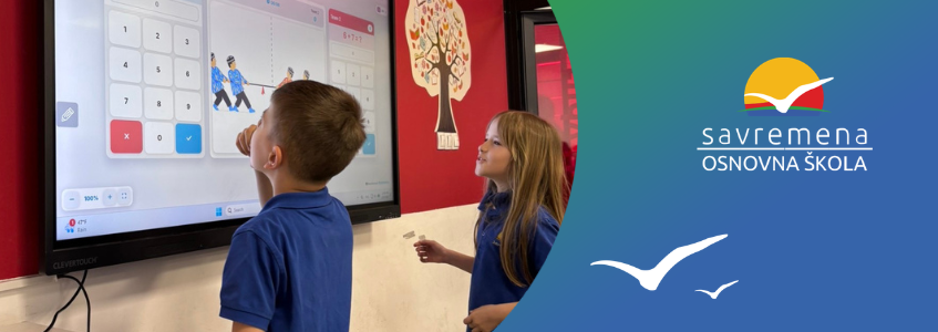 At Savremena Primary School, mathematics is far more than solving problems – it becomes an experience that combines play, collaboration, and active thinking. Through carefully designed activities, students have the opportunity to revise and reinforce previously learned material in an engaging and interactive way, while also applying their knowledge in new contexts. One of the most effective approaches includes working on interactive boards, where students solve mathematical tasks through team-based challenges. The tasks are presented in a game-like format, which increases motivation and encourages students to participate actively, think quickly, and make accurate decisions. This method strengthens concentration, logical reasoning, and the ability to connect different concepts.