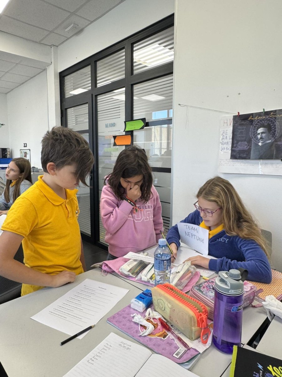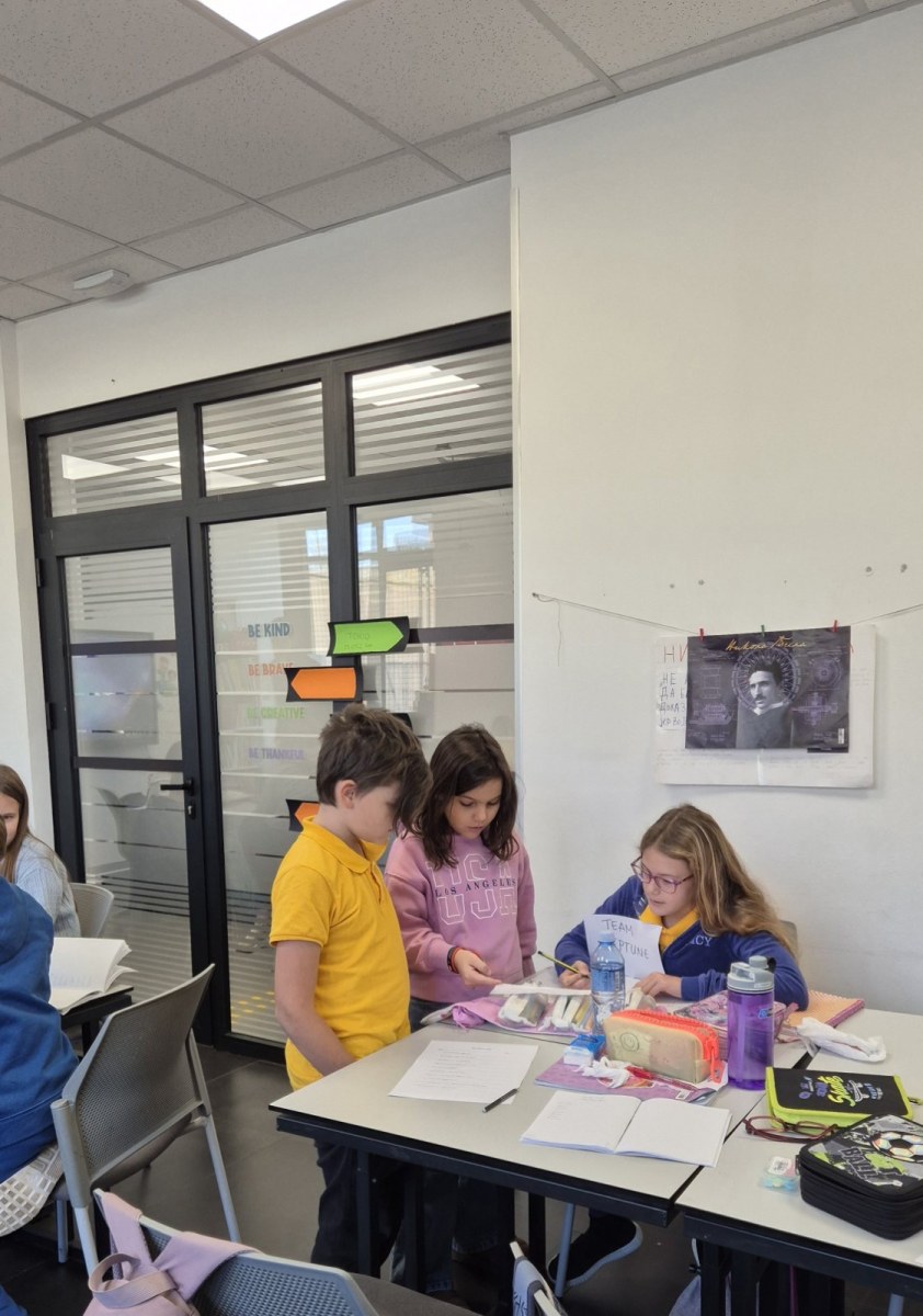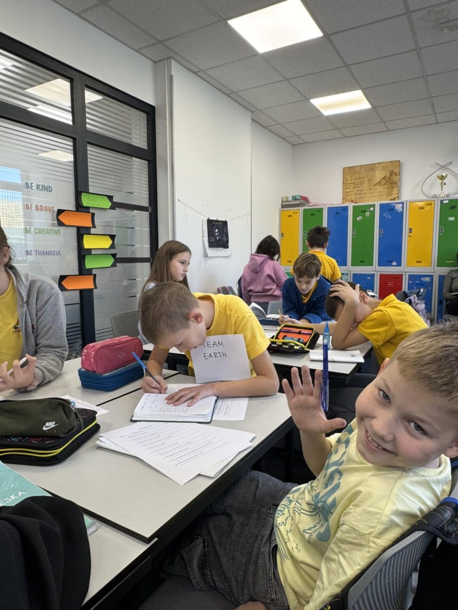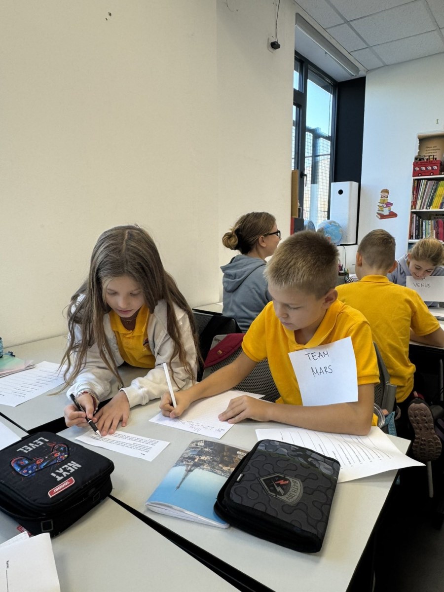 To make the class even more interactive, the students were divided into teams, with each team representing one planet of the Solar System. Labels such as “Team Earth,” “Team Saturn,” and “Team Uranus” were placed on desks, adding excitement and a sense of friendly competition.