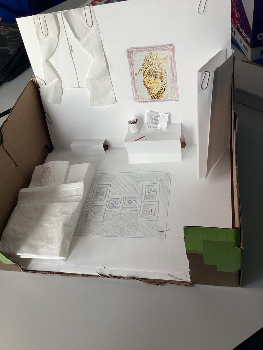 Students from the upper grades worked on projects involving the creation of three-dimensional models representing their bedrooms, as well as the spaces they imagine they might design for themselves in the future. The task was designed to encourage students to think about the spaces they live in—their purpose, organisation and the impact they have on everyday life. Through this process, a bedroom was not viewed merely as a place for rest, but as a personal space that reflects interests, habits and ways of thinking. Each student was free to interpret the task in their own way, resulting in a wide range of authentic and highly personal solutions.