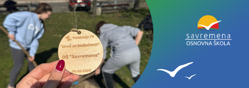 Thursday, March 6, 2026, was the day when students and preschoolers of Savremena Primary School actively participated in an action with significance far greater than a single day – planting trees as part of the “Tree for the Future” project by the 1% Foundation. With the help of greenery experts and the support of teachers, Savremenci planted young seedlings that will grow alongside them for years to come. Each planted tree bore a wooden tag with the school’s name and planting date – physical proof that students left a lasting mark.