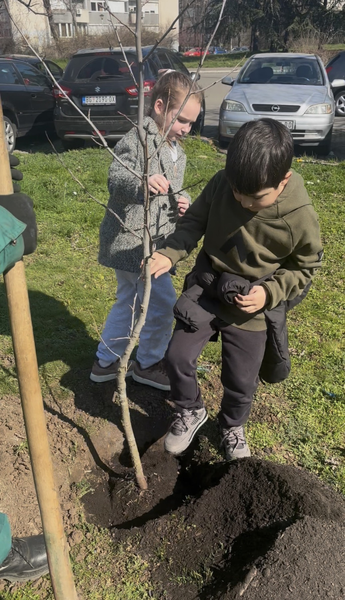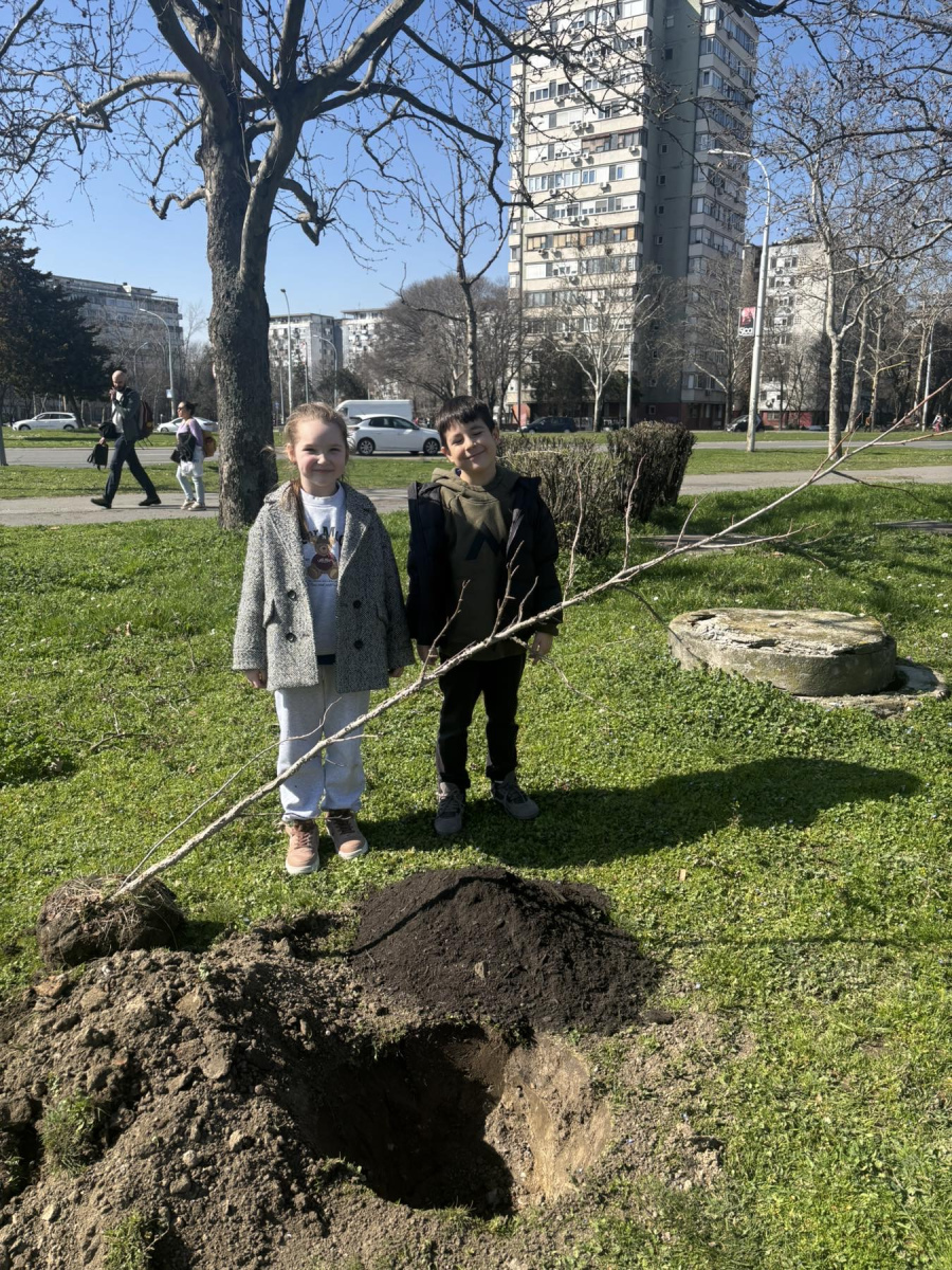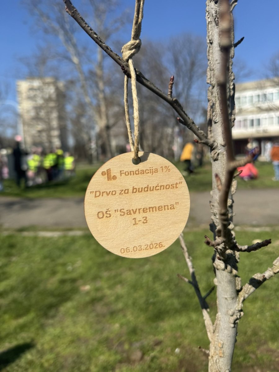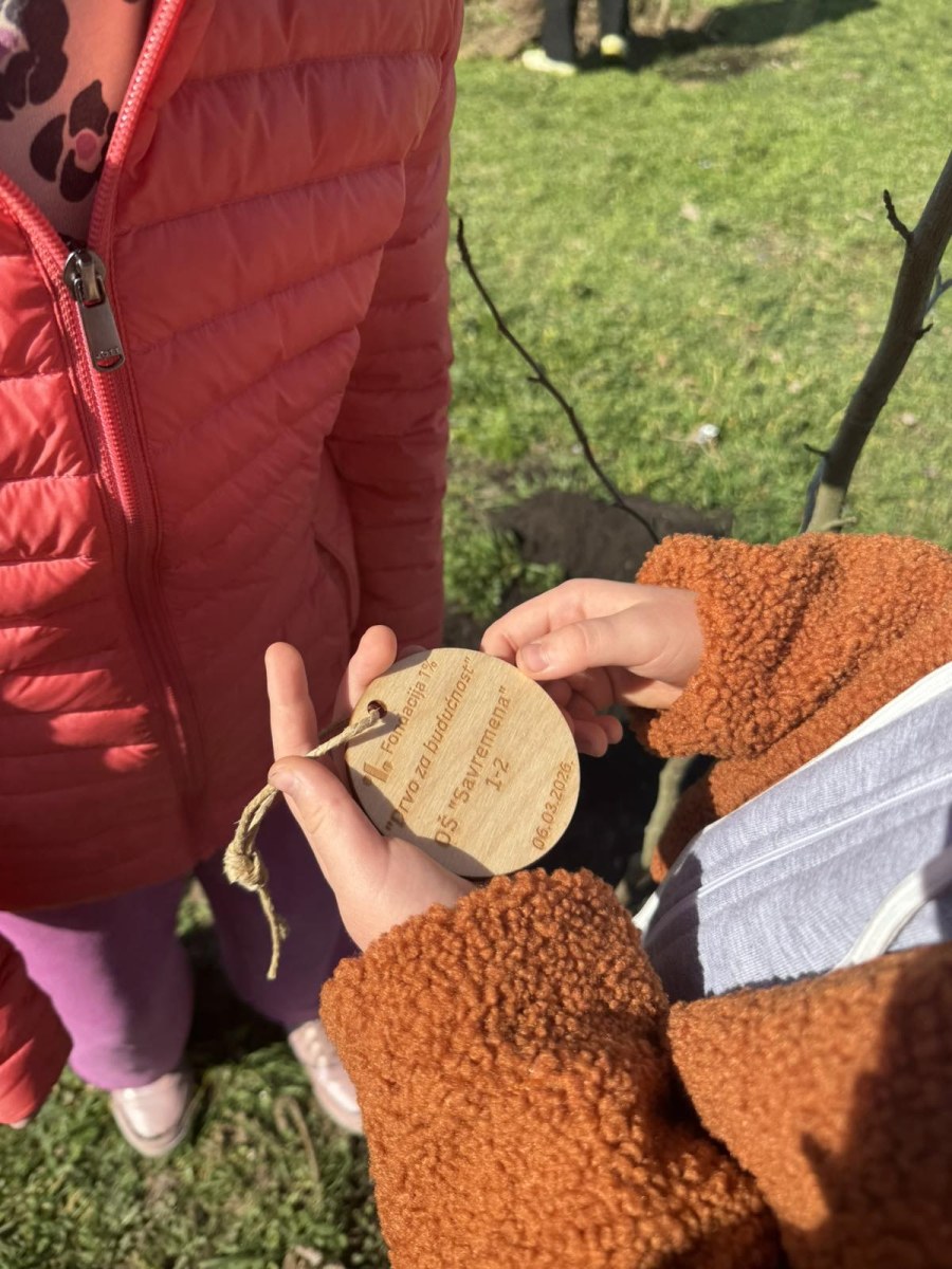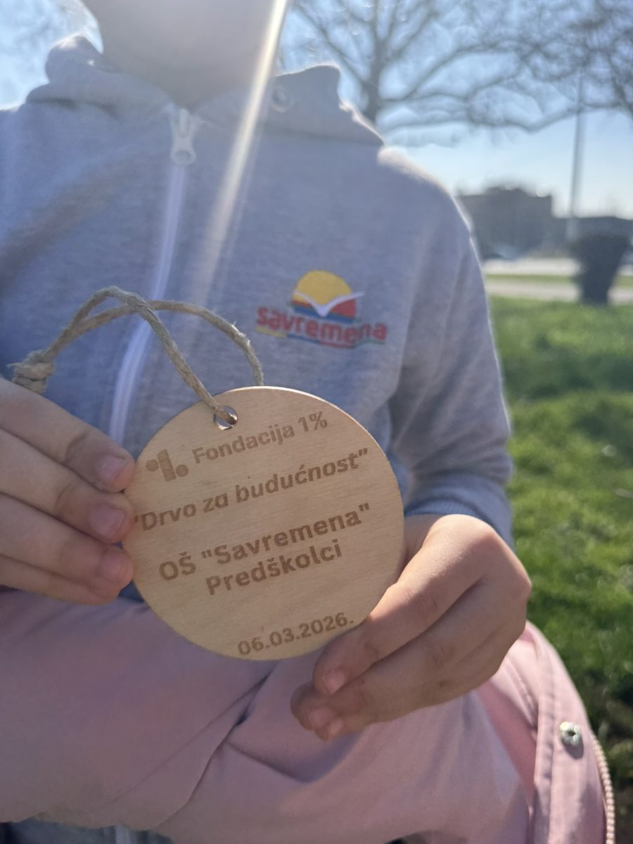 Thursday, March 6, 2026, was the day when students and preschoolers of Savremena Primary School actively participated in an action with significance far greater than a single day – planting trees as part of the “Tree for the Future” project by the 1% Foundation. With the help of greenery experts and the support of teachers, Savremenci planted young seedlings that will grow alongside them for years to come. Each planted tree bore a wooden tag with the school’s name and planting date – physical proof that students left a lasting mark.