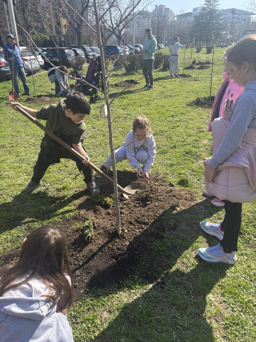 The action wasn’t just a practical activity – it was an opportunity for students to understand what ecological responsibility means. Before planting, they discussed why greenery is important, how trees affect air quality, how they build an ecosystem that makes the city a better place to live. Then they moved to action. They dug the soil, carefully placed seedlings, covered the roots, pressed the soil around the trunk. All of this with smiles, concentration, and a sense that they were doing something meaningful.